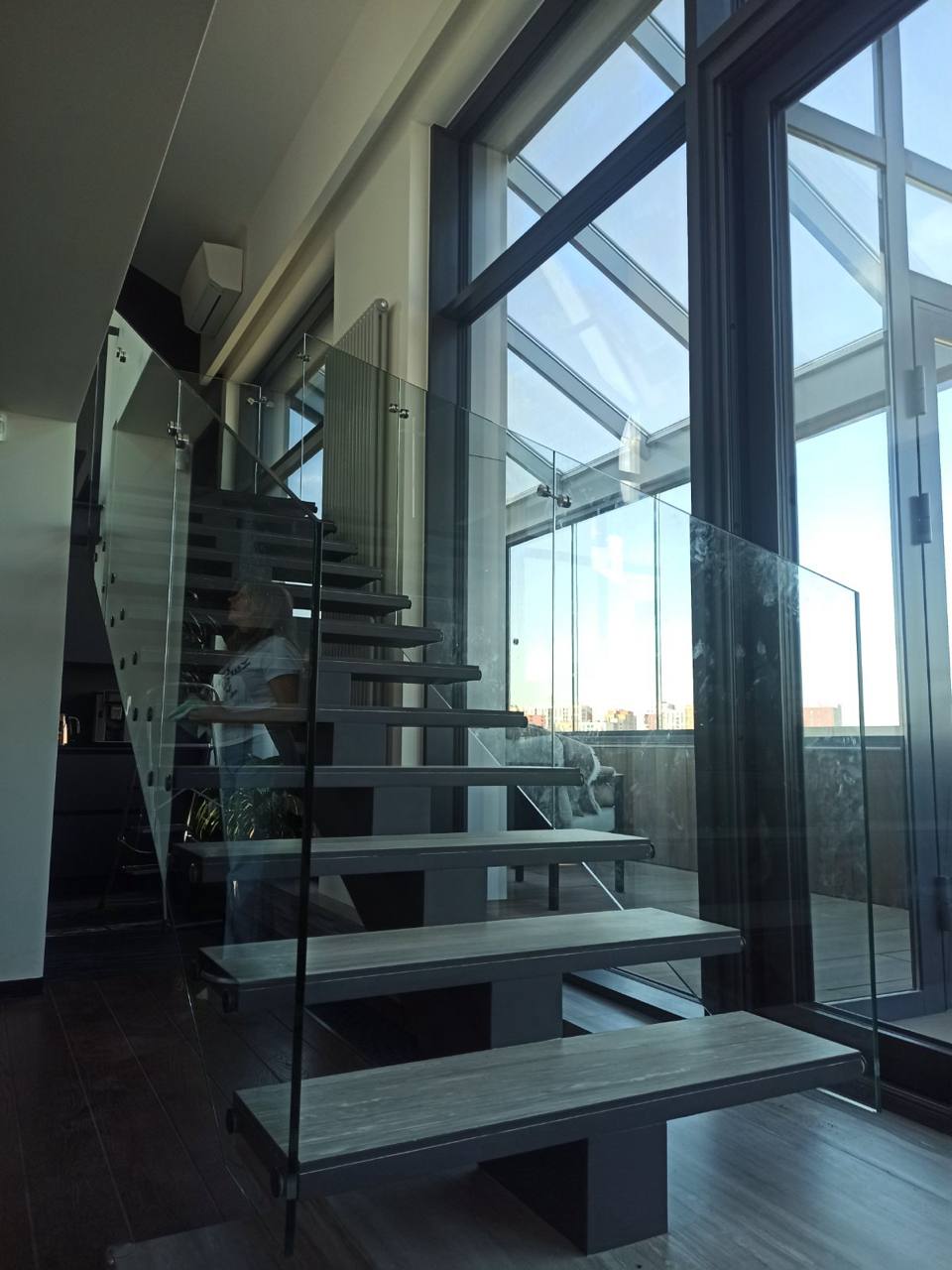 Such railings create the effect of lightness and space, as they have no visible metal elements. The glass is mounted in a hidden profile, providing strength and maximum transparency - ideal for modern interiors.